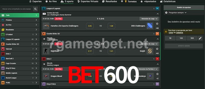 A aposta bet600 oferece aos jogadores a experiência mais conveniente de apostas em eSports!